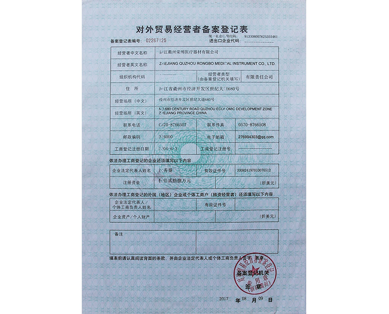 对外贸易经营者备案登记表