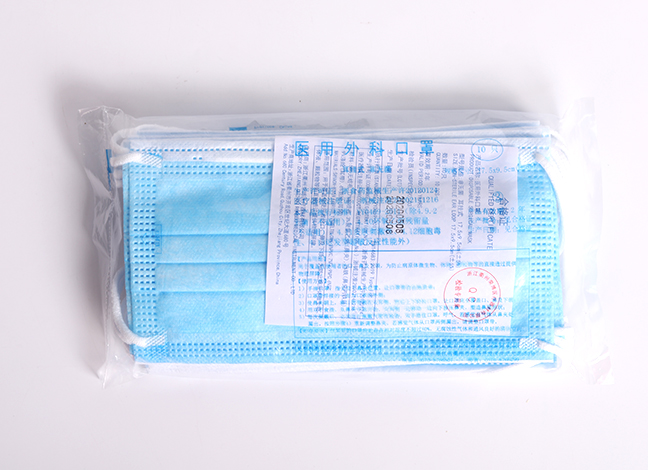 一次性外科口罩通常由面罩、定形件、束带等组件加工而成,一般由非织造布材料制造而成。通过过滤起到隔离作用。外科口罩通过滤料阻隔病原体微生物、体液、颗粒物直接滤过被人体吸入或者呼出。用于戴在手术室医务人员口鼻部位,以防止皮屑、呼吸道微生物传播到开放的手术创面,并阻止手术病人的体液向医务人员传播,起到双向生物防护的作用。